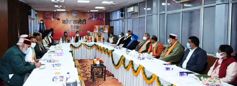 उत्तराखंड भाजपा मुख्यालय में पार्टी के प्रदेश कोर ग्रुप की बैठक हुई। बैठक में विधानसभा चुनाव के मद्देनजर प्रत्याशी चयन को दावेदारों के पैनल पर चर्चा की गई। मुख्‍यमंत्री पुष्‍कर सिंह धामी ने शनिवार को कोर ग्रुप की बैठक के बाद कहा कि वह खटीमा से चुनाव लड़ेंगे। उन्‍होंने कहा कि विधानसभा चुनाव को लेकर पार्टी जल्‍द ही प्रत्‍याशियों की सूची भी जारी करेगी। बैठक खत्म होने के बाद केंद्रीय मंत्री एवं प्रदेश चुनाव प्रभारी प्रहलाद जोशी ने बताया कि बैठक में चुनाव की रणनीति पर चर्चा की गई और बदली परिस्थितियों में चुनाव प्रचार किस तरह होगा, इसकी रणनीति तय की गई। इसके अलावा चुनाव से सम्बंधित अन्य विषयों पर भी विमर्श किया गया। उधर, सूत्रों ने बताया कि बैठक में विधानसभा सीटों के लिए तैयार पैनल पर भी विमर्श हुआ और सूची को शार्टलिस्ट किया गया।
