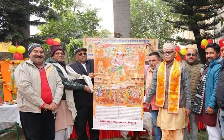 श्री अयोध्या धाम में निर्मित भव्य श्री राम मंदिर के कैलेंडर का अनावरण प्रभु श्री राम के चित्र के समक्ष दीपक प्रज्वलित कर किया गया।