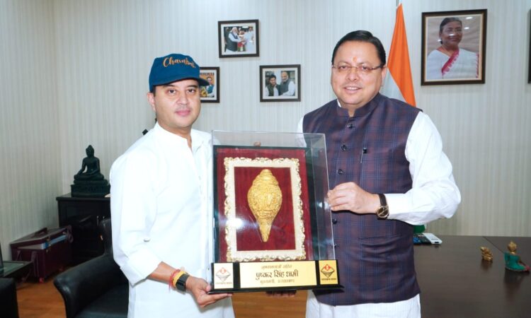 मुख्यमंत्री पुष्कर सिंह धामी ने नई दिल्ली में केंद्रीय संचार मंत्री ज्योतिरादित्य एम सिंधिया से भेंट कर उन्हें संचार मंत्रालय का दायित्व मिलने पर शुभकामनाएं दी तथा राज्य में संचार सेवाओं के विस्तार से संबंधित विभिन्न विषयों पर उनसे चर्चा की। मुख्यमंत्री ने राज्य में संचार व्यवस्था से वंचित क्षेत्रों में भी टावर लगाकर संचार व्यवस्था से आच्छादित किए जाने तथा पिथौरागढ़ के सीमांत क्षेत्र के गांवों में संचार सुविधाओं के विस्तार तथा रिलाइन्स जिओ द्वारा गुंजी में लगाये गये टावर को संचालित कराये जाने का भी अनुरोध किया।