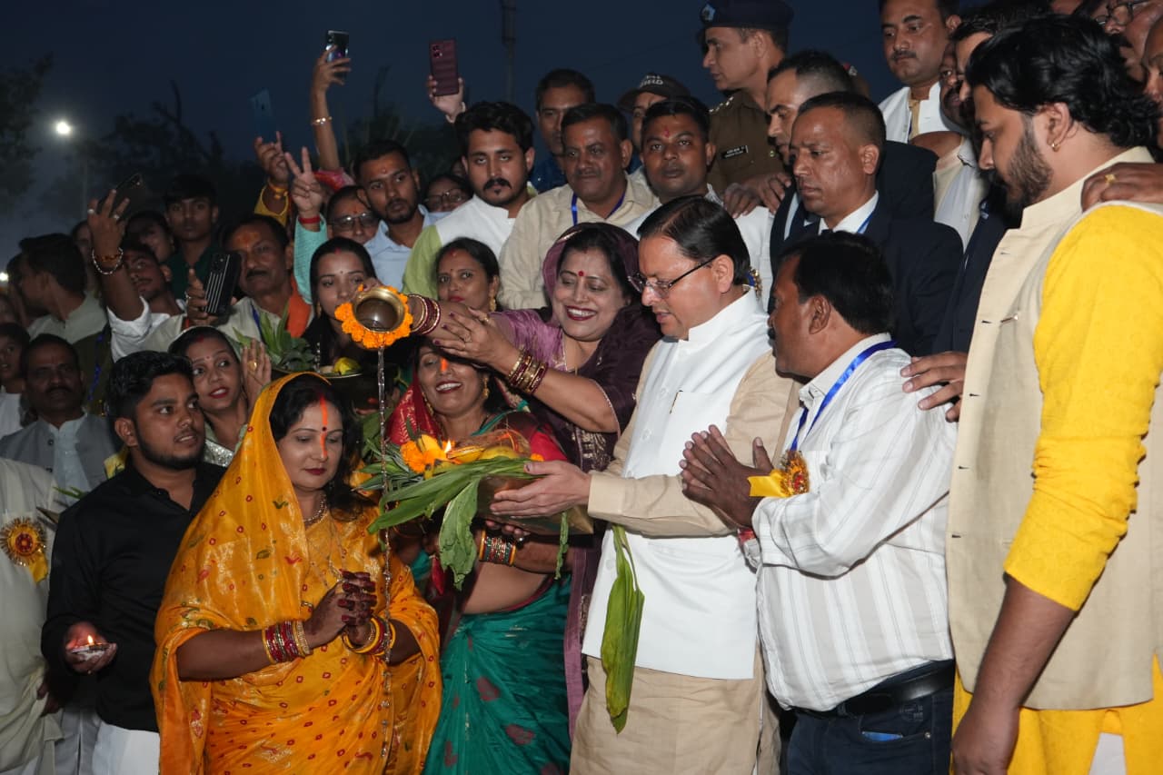 मुख्यमंत्री पुष्कर सिंह धामी ने पूर्वांचल सेवा समिति द्वारा संजय रेलवे पार्क, खटीमा में आयोजित सूर्य षष्ठी व्रत महोत्सव (छठ पूजा) के कार्यक्रम में बतौर मुख्यातिथि प्रतिभाग किया। कार्यक्रम में पहुंचकर मुख्यमंत्री ने अस्ताचलगामी सूर्य को अर्घ्य दिया। उन्होंने प्रदेश की सुख,समृद्धि व खुशहाली की कामना की। मुख्यमंत्री ने कार्यक्रम को सम्बोधित करते हुए कहा की पूर्वांचल सेवा समिति के समस्त पदाधिकारियों को इस भव्य-दिव्य कार्यक्रम को आयोजित करने के लिए साधुवाद। आज का ये पावन पर्व हमारी सनातन संस्कृति की उस उज्ज्वल परंपरा का प्रतीक है, जिसमें आस्था, अनुशासन, तपस्या और प्रकृति के प्रति कृतज्ञता एक साथ दिखाई देती है। छठ पूजा केवल एक धार्मिक अनुष्ठान नहीं, बल्कि ये जीवन मूल्यों और पारिवारिक संस्कारों का महापर्व है। ये पर्व हमें प्रकृति और पर्यावरण के महत्व के बारे में भी बताता है। उन्होंने कहा कि छठ महापर्व भारत की उस महान संस्कृति का भी प्रत्यक्ष प्रमाण है, जिसमें उगते सूर्य के साथ ही ढलते सूर्य को भी अर्घ्य अर्पित किया जाता है, जो अपने आप में अनोखा अनुभव है। छठ पर्व की विशेष बात यह है कि यह लोक आस्था का पर्व हर वर्ग और क्षेत्र के लोग अत्यंत श्रद्धा के साथ मनाते हैं। चाहे बिहार, झारखंड, उत्तर प्रदेश हो या हमारा उत्तराखंड, आज पूरे देश में छठ निर्बाध आस्था के साथ मनाया जा रहा है।