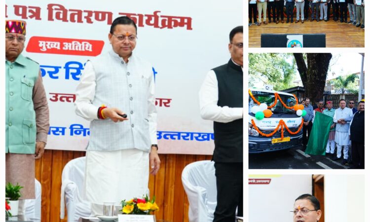 मुख्यमंत्री पुष्कर सिंह धामी ने मुख्यमंत्री कैम्प कार्यालय स्थित मुख्य सेवक सदन में शहरी विकास विभाग के अन्तर्गत चयनित 63 सफाई निरीक्षकों को नियुक्ति पत्र प्रदान किए। इस अवसर पर मुख्यमंत्री ने लगभग 62 करोड़ की अनुमानित लागत से बनने वाले शहरी विकास निदेशालय के नवीन भवन का वर्चुअल शिलान्यास भी किया। मुख्यमंत्री ने कार्यक्रम के दौरान कूड़ा निस्तारण वाहनों को हरी झंडी दिखाकर रवाना भी किया। मुख्यमंत्री ने कहा कि चार वर्षों में राज्य में लगभग 30 हजार युवाओं को सरकारी नौकरी प्रदान की जा चुकी है।