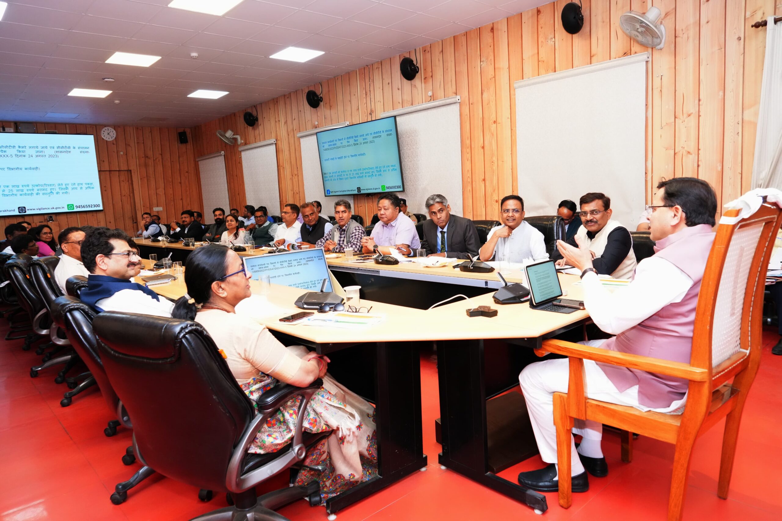 बैठक में मुख्य सचिव राधा रतूड़ी, अपर मुख्य सचिव आनन्द बर्द्धन, प्रमुख सचिव न्याय प्रदीप पंत, प्रमुख सचिव आर.के सुधांशु, एल. फैनई, आर.मीनाक्षी सुंदरम, निदेशक सतर्कता वी. मुरूगेशन, सचिव गण, विभिन्न विभागों के विभागाध्यक्ष और वर्चुअल माध्यम से जिलाधिकारी उपस्थित थे।