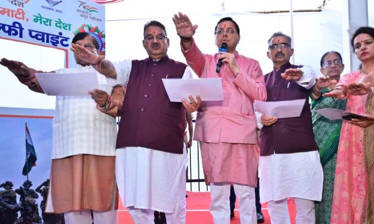 मुख्यमंत्री पुष्कर सिंह धामी ने ’मेरी माटी-मेरा देश’ कार्यक्रम में उपस्थित स्वतंत्रता संग्राम सेनानियों एवं देश के लिए अपना सर्वाेच्च बलिदान देने वाले वीर सैनिकों के परिजनों का स्वागत करते हुए कहा कि यह उनका सौभाग्य है कि आज मुख्य सेवक के रूप में उन्हें सभी को सम्मानित करने का अवसर प्राप्त हुआ। उन्होंने कहा कि प्रधानमंत्री नरेन्द्र मोदी के दूरदर्शी नेतृत्व में हमें उन वीरों की वंदना करने का अवसर प्राप्त हुआ है, जिन्होंने देश की माटी की खातिर अपने प्राणों की आहुति दी। प्रधानमंत्री ने आजादी के अमृत काल में देशवासियों को पंच प्रण दिए हैं। भारत को विकसित राष्ट्र बनाने का प्रण, गुलामी की मानसिकता से मुक्ति का प्रण, भारत की समृद्ध विरासत पर गर्व एवं उसका संरक्षण करने का प्रण तथा देश की एकता और अखंडता को अक्षुण्ण रखने का प्रण। जिस प्रकार आज तक हमने प्रधानमंत्री द्वारा प्रारंभ किए गए प्रत्येक अभियान को अपना सम्पूर्ण सहयोग एवं समर्थन दिया है, उसी प्रकार मुझे विश्वास है कि हम ’मेरी माटी-मेरा देश’ अभियान को भी अपना पूर्ण सहयोग प्रदान करेंगे।