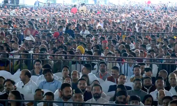 देहरादून। उत्तराखंड राज्य स्थापना की रजत जयंती वर्ष पर एफ.आर.आई, देहरादून में आयोजित मुख्य समारोह में राज्य भर से आए करीब 1 लाख 50 हज़ार से अधिक लोगों ने प्रधानमंत्री नरेंद्र मोदी को सुना। करीब 1 कि.मी तक कार्यक्रम स्थल में पंडाल की व्यवस्था की गई थी। इसके अतिरिक्त एक किलोमीटर क्षेत्र में लगाए गए एलईडी स्क्रीन के माध्यम से भी लोग इस ऐतिहासिक कार्यक्रम के साक्षी बने। उत्तराखंड के इतिहास में पहली बार किसी कार्यक्रम में करीब डेढ़ लाख से अधिक लोगों ने एक साथ प्रतिभाग किया।