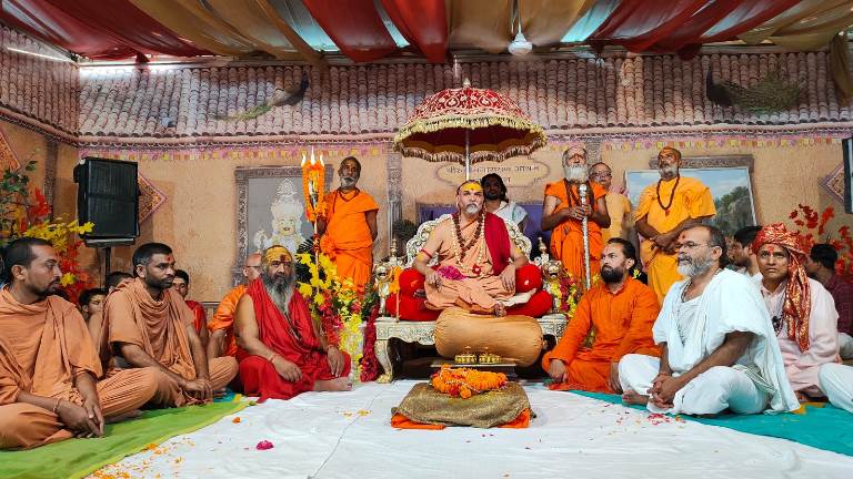 इस अवसर पर उपस्थित लोगों को शंकराचार्य स्वामी आविमुकातेश्वरानंद सरस्वती ने कर्म और भाग्य को परिभाषित करते हुए कहा कि भाग्य फलित होता है। उन्होंने बसुदेव और नंद का उदाहरण दिया। गंगा की महत्ता पर प्रकाश डालते हुए कहा कि गंगा जल स्पर्श मात्र से ही सभी राग द्बेष से मुक्त हो जाते हैं।