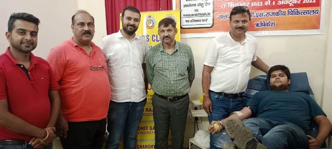 रेडीमेड गारमेंट महासंघ ऋषिकेश द्वारा स्वैच्छिक रक्तदान दिवस पर राजकीय चिकित्सालय में रक्तदान शिविर का आयोजन किया। शिविर का उद्घाटन नगर उद्योग व्यापार प्रतिनिधि मंडल ऋषिकेश के अध्यक्ष ललित मोहन मिश्र ने किया। शिविर में 42 लोगों द्वारा रजिस्ट्रेशन कराया गया, जिसमें 22 लोगों को रक्तदान हेतु स्वस्थ पाया गया। अधिकांश महिलाओं कमी होने के कारण उनका रक्तदान नहीं हो पाया।