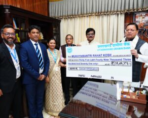 आपदा प्रभावितों की सहायता एवं पुनर्निर्माण कार्यों को उत्तरांचल ग्रामीण बैंक ने दिए 35,49,371 रूपये