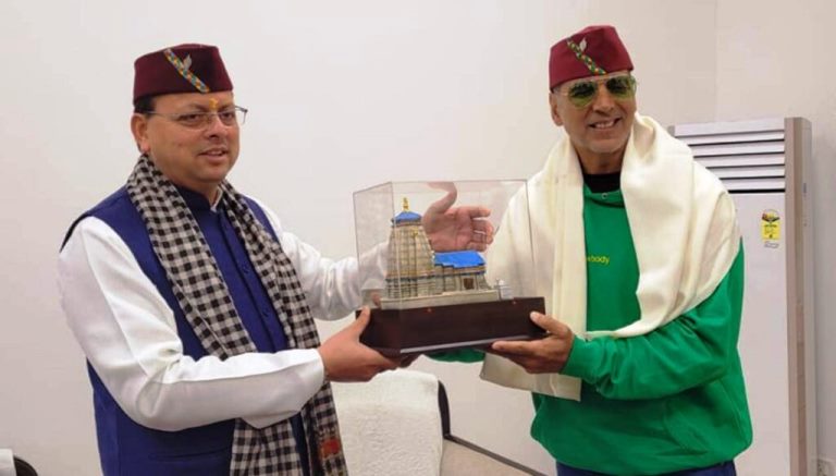 मुख्यमंत्री आवास आने पर सीएम धाम ने अक्षय को ब्रह्मकमल वाली पहाड़ी टोपी पहनाई और चार धामों का स्मृति चिन्ह भेंट किया। इस दौरान अक्षय कुमार ने कहा कि उत्तराखंड फिल्मों की शूटिंग के लिए बेहद आकर्षक जगह है उन्हें यहां पर शूटिंग करके बहुत मजा आया है। सीएम धामी ने फेसबुक पर लिखा है, आज प्रख्यात अभिनेता, युवाओं के प्रेरणास्रोत और मेरे मित्र अक्षय कुमार का मुख्यमंत्री आवास में स्वागत एवं अभिनन्दन किया। अक्षय कुमार ने राज्य के युवाओं को प्रेरित करने के लिए सरकार द्वारा उठाए गए कदमों की सराहना की और हर संभव सहयोग का आश्वासन दिया।