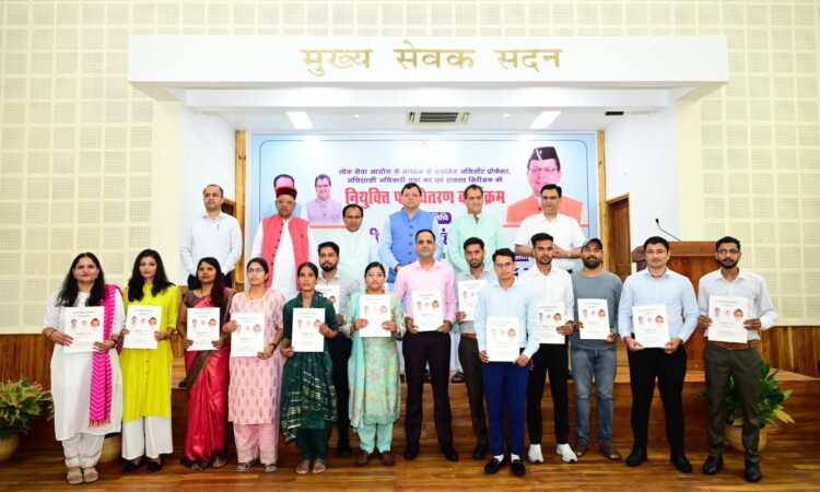मुख्यमंत्री पुष्कर सिंह धामी ने मुख्यमंत्री आवास स्थित मुख्य सेवक सदन में आयोजित कार्यक्रम में उत्तराखण्ड लोक सेवा आयोग के माध्यम से उच्च शिक्षा विभाग में चयनित 68 असिस्टेंट प्रोफेसर, शहरी विकास विभाग में चयनित 63 अधिशासी अधिकारी एवं 22 कर व राजस्व निरीक्षकों को नियुक्ति पत्र प्रदान किए।