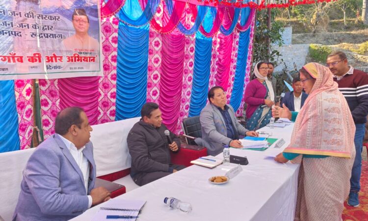 मुख्यमंत्री पुष्कर सिंह धामी के दिशा-निर्देशों के क्रम में आम जनमानस तक केंद्र एवं राज्य सरकार की जनकल्याणकारी योजनाओं का लाभ सीधे पहुंचाने और जनसमस्याओं के त्वरित समाधान के उद्देश्य से प्रदेशभर में “जन-जन की सरकार, जन-जन के द्वार” अभियान संचालित किया जा रहा है। इसी क्रम में प्रभारी सचिव रुद्रप्रयाग डॉ. आर. राजेश कुमार ने जनपद का दौरा कर प्रशासनिक व्यवस्थाओं का स्थलीय निरीक्षण किया और ग्रामीणों से सीधा संवाद स्थापित किया। जिलाधिकारी रुद्रप्रयाग प्रतीक जैन के कुशल नेतृत्व में जनपद की 27 न्याय पंचायतों में चरणबद्ध रूप से बहुउद्देशीय शिविरों का आयोजन किया जा रहा है। इसी कड़ी में 05 फरवरी 2026 को न्याय पंचायत सतेराखाल के अंतर्गत ग्राम कमेड़ा में “प्रशासन गांव की ओर” बहुउद्देशीय शिविर का आयोजन किया गया। शिविर की अध्यक्षता प्रभारी सचिव रुद्रप्रयाग डॉ. आर. राजेश कुमार ने की।