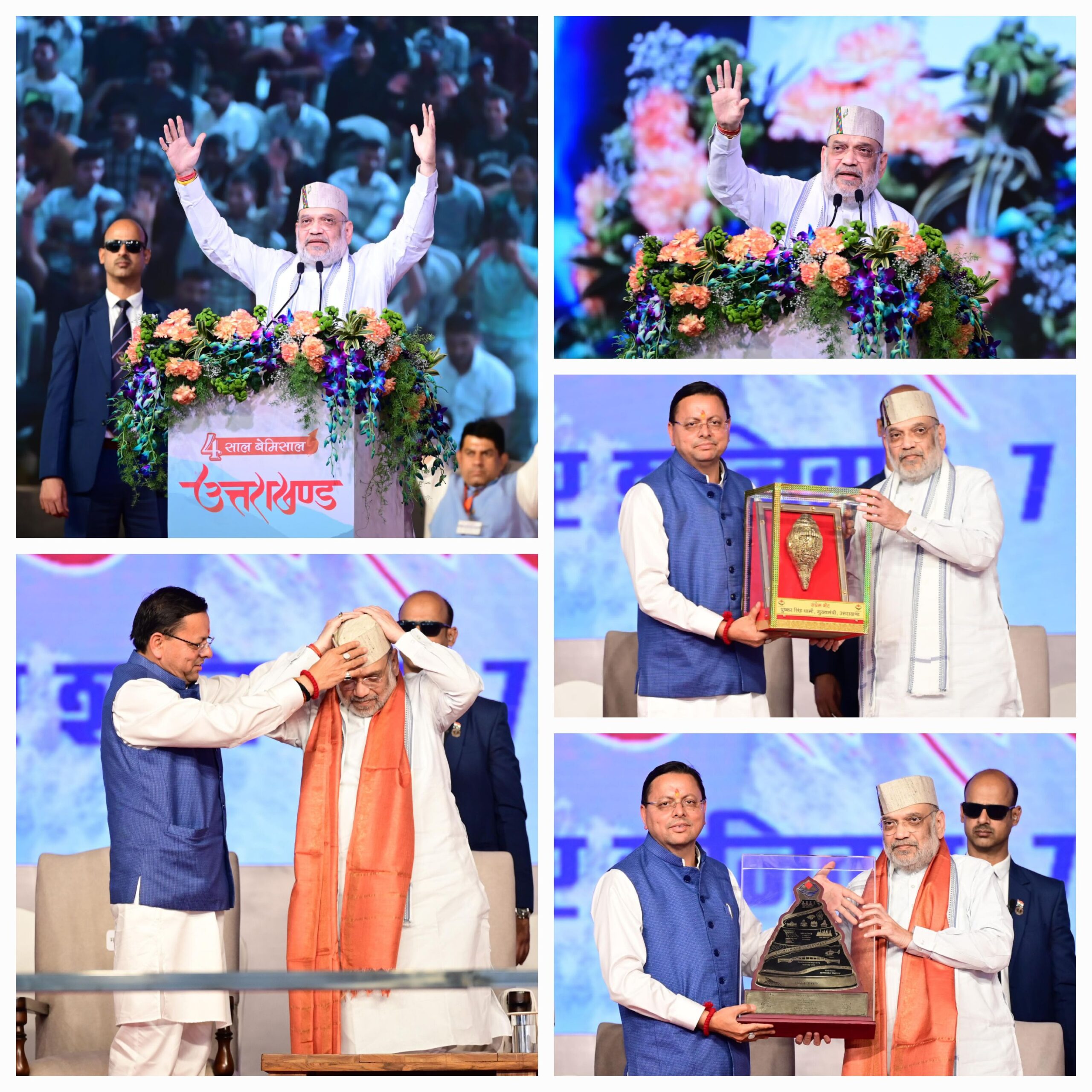 केंद्रीय गृह मंत्री ने संबोधन की शुरुआत उत्तराखंड राज्य आंदोलन से करते हुए कहा कि, उत्तराखंड के युवाओं को अपनी पहचान, संस्कृति बचाने के साथ ही अपने अधिकारों की रक्षा के लिए सड़कों पर उतरना पड़ा, लेकिन इसके लिए उन्हें रामपुर तिराहा कांड जैसी हिंसा का सामना करना पड़ा। इसके बाद केंद्र में भाजपा सरकार बनने पर तत्कालीन प्रधानमंत्री अटल बिहारी वाजपेई ने उत्तराखंड के साथ ही झारखंड और छत्तीसगढ़ जैसे राज्यों का निर्माण करने का निर्णय लिया, आज ये तीनों राज्य तेजी से विकास के पथ पर अग्रसर हैं। केंद्रीय गृह मंत्री ने कहा कि उन्होंने कहा था कि उत्तराखंड को अटल जी ने बनाया है, अब इसे संवारने का काम मोदी जी करेंगे, इसी क्रम में 2017 से 2026 तक का कालखंड, उत्तराखंड के विकास को समर्पित रहा है। उन्होंने कहा कि बीते चार सालों में मुख्यमंत्री पुष्कर सिंह धामी ने उत्तराखंड की सभी समस्याओं को चुन- चुन कर समाप्त करने का काम किया है। इस कारण उत्तराखंड अब दोगुनी रफ्तार से विकास के रास्ते पर बढ़ रहा है।