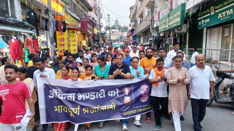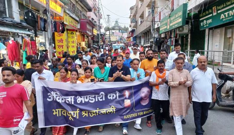 यमकेश्वर ब्लॉक के गंगा भोगपुर स्थित रिसॉर्ट में कार्यरत युवती के साथ हुई घटना की निंदा करते हुए भाजपा ऋषिकेश मंडल की ओर से आमजन के साथ कैंडल मार्च निकाला गया। इस दौरान उत्तराखंड की बेटी अंकिता भंडारी की आत्मीय शांति की कामना ईश्वर से की गई। साथ ही दो मिनट का मौन रखकर श्रद्धाजलि अर्पित की गई।