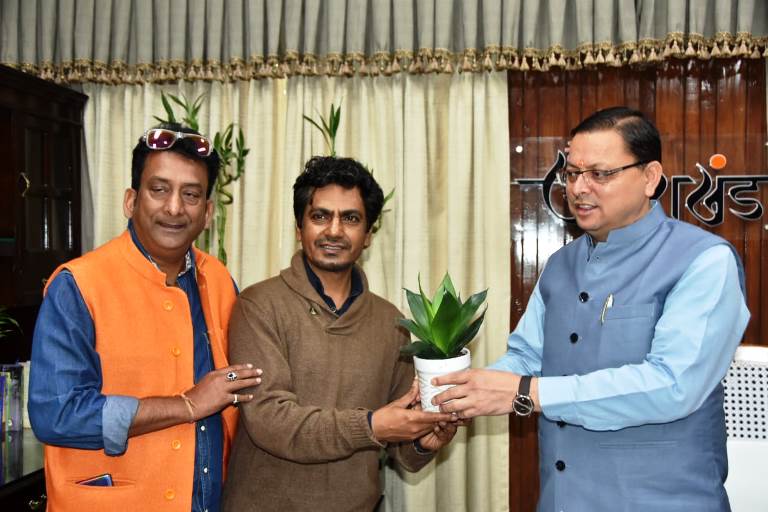 मुख्यमंत्री पुष्कर सिंह धामी से शनिवार को मुख्यमंत्री कैम्प कार्यालय में फिल्म अभिनेता नवाजुद्दीन सिद्दीकी ने भेंट की। नवाजुद्दीन सिद्दीकी उत्तराखण्ड में फिल्म की शूटिंग कर रहे हैं। रोतु की बेली, चंबा, मसूरी एवं देहरादून में उनके द्वारा फिल्मांकन किया गया। उन्होंने कहा कि फिल्मों की शूटिंग के लिए उत्तराखण्ड में बहुत अच्छा वातावरण है। उत्तराखण्ड का नैसर्गिक सौंदर्य फिल्मांकन के लिए लोगों को आकर्षित कर रहा है।