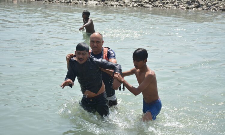 चौकी त्रिवेणी घाट पर स्थानीय व्यक्ति ने डूबने की सूचना दी। इस पर पुलिस और जल पुलिस के सिपाहियों ने गंगा में छलांग लगा दी और व्यक्ति को गंगा नदी से सकुशल बाहर निकाला।