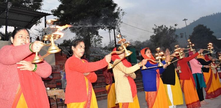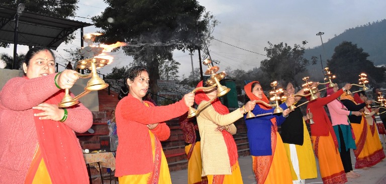 गंगा तट पर हुई दूरगामी धामी को समर्पित महिला गंगा आरती