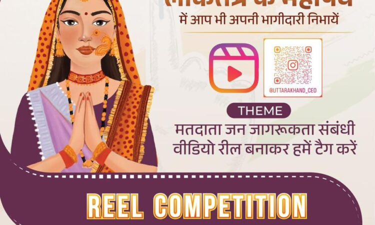 इसके अंतर्गत आमजन को रील्स के माध्यम से मतदाताओं को जागरूक करना है। मतदान जागरूकता पर रील्स बना कर हमें मुख्य निर्वाचन अधिकारी उत्तराखंड के इंस्टाग्राम एकाउंट https://www.instagram.com/uttarakhandceo पर टैग करें और हर दिन आकर्षक इनाम जीतें। रोजाना पहले विजेता को ₹ 1000 और दूसरे विजेता को ₹ 500 का नकद इनाम दिया जाएगा। यह रील कंपीटेशन शुक्रवार 29 मार्च से 7 अप्रैल तक चलेगा। वीडियो को एक विशेष प्राधिकार प्राप्त समिति द्वारा प्रतिदिन रिव्यू कर प्रथम तीन नामों की घोषणा की जाएगी।